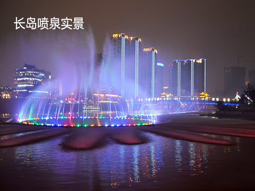 新疆護城河音樂噴泉通過程序控制系統和音樂控制系統,對音樂進行編程,使噴泉造型與音樂旋律、燈光同步結合而產生千變萬化的水景,高端大氣..